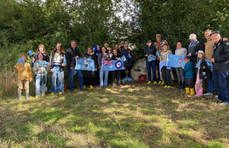 Barry Hart and his family place a plaque at his father’s crash site from WW2. /Submitted
