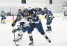 A scoring frenzy broke out during the second with five goals total scored, three for the Pats and two for the Huskies. After a bad bounce of the boards caught Linton out of position, Nolan Lowe buried the puck into the empty net to double the lead.