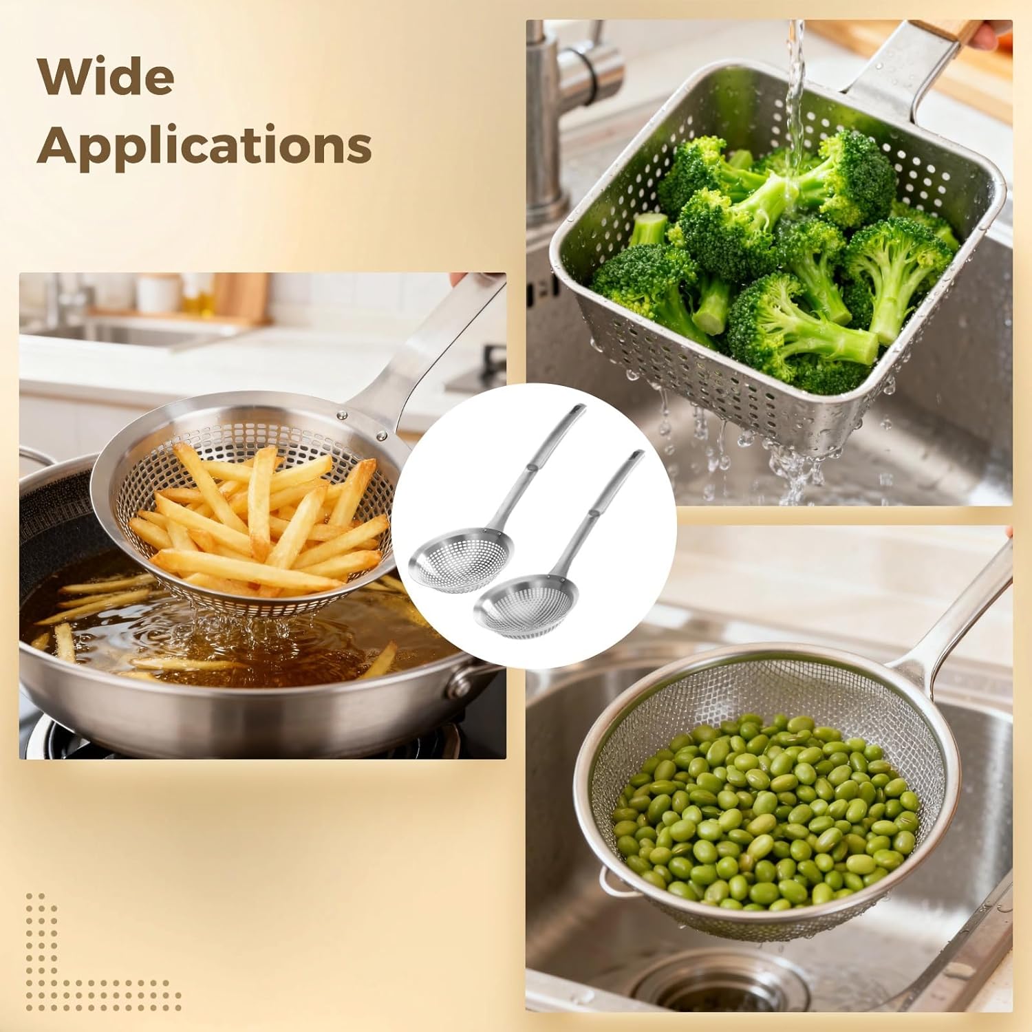 Color: Silver Material: Stainless Steel Size: Stainless Steel Skimmer Spoon: 14.37 x 5.51 x 1.54 in / 36.5 x 14 x 3.9 cm Package Includes: 2 x Stainless Steel Skimmer Spoons Note: - Please refer to the measurement. Tiny measuring error is allowable in normal range. - There might be a little color difference due to the monitor, camera or other factors, please refer to the physical item.