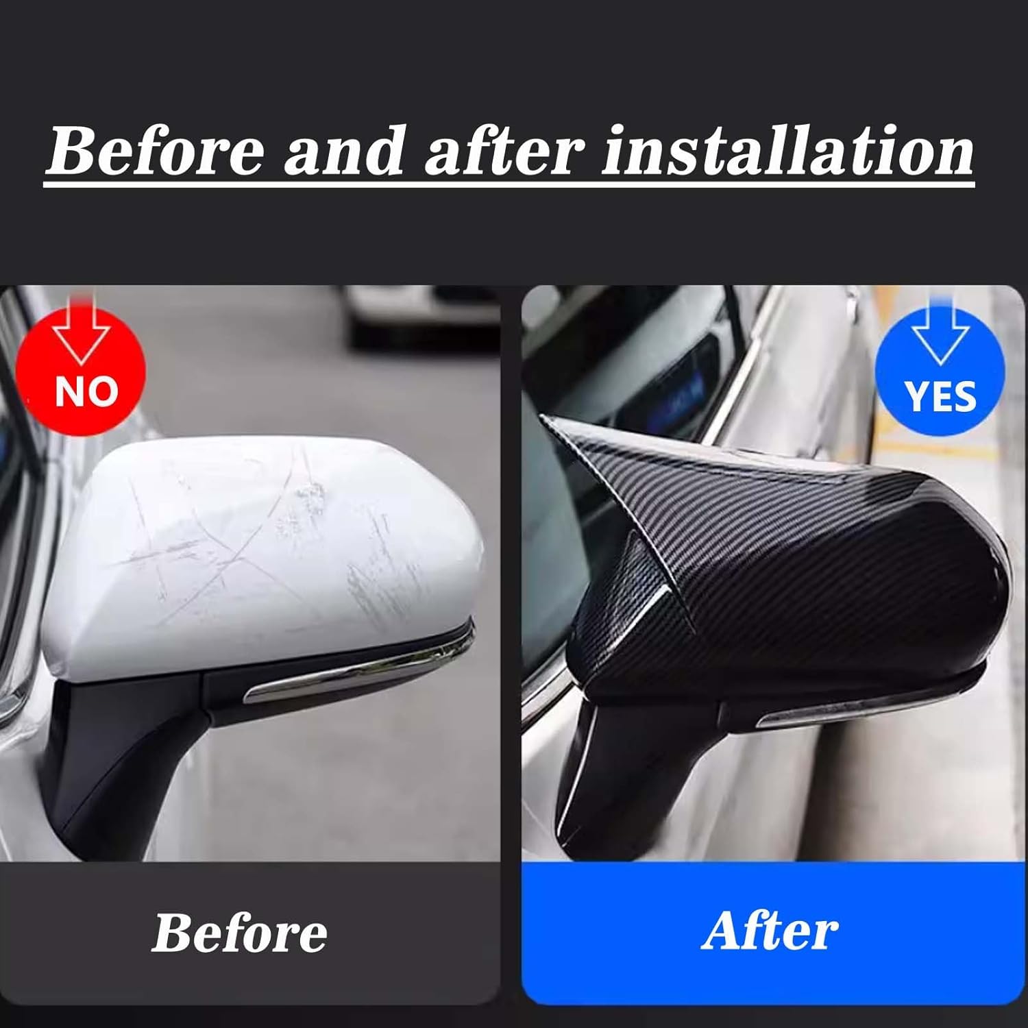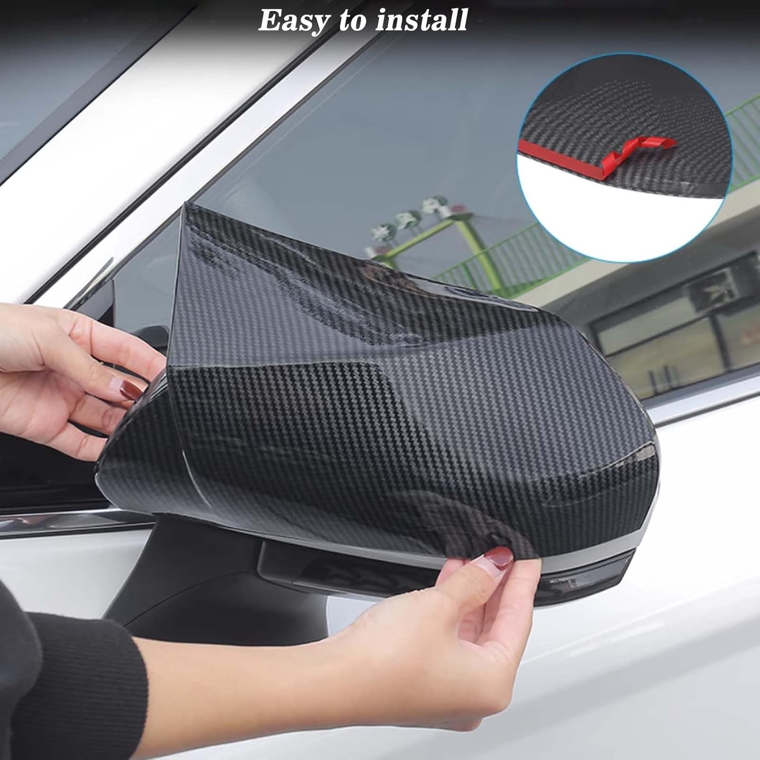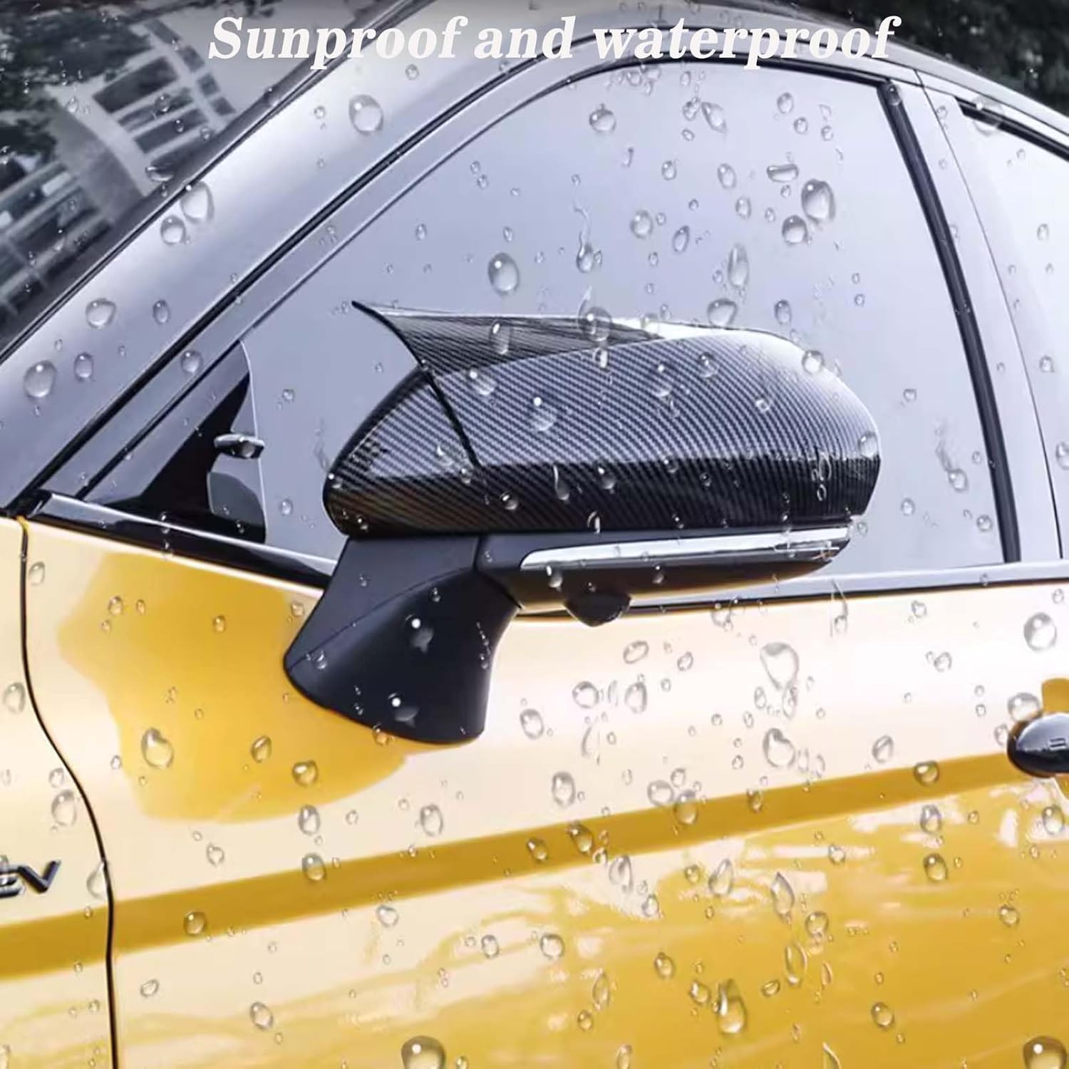 Elevate the appearance of your car with these sleek side rearview mirror guard cover caps.,these exterior accessories add a sophisticated touch while protecting your mirrors. The covers feature a premium black finish with a striking angular design that complements your vehicle's modern aesthetics. Made with precise fitment in mind, these mirror caps seamlessly integrate with your car existing mirrors. The durable construction helps shield your mirrors from minor impacts and scratches while enhancing the overall look of your vehicle. Installation is straightforward, requiring no special tools or modifications. These mirror guard covers are an excellent way to personalize your car and add a custom touch that sets it apart from others on the road. The aerodynamic design maintains the mirrors' functionality while adding a sporty accent to your vehicle's profile. Perfect for car enthusiasts looking to enhance their car exterior appearance with practical accessories.