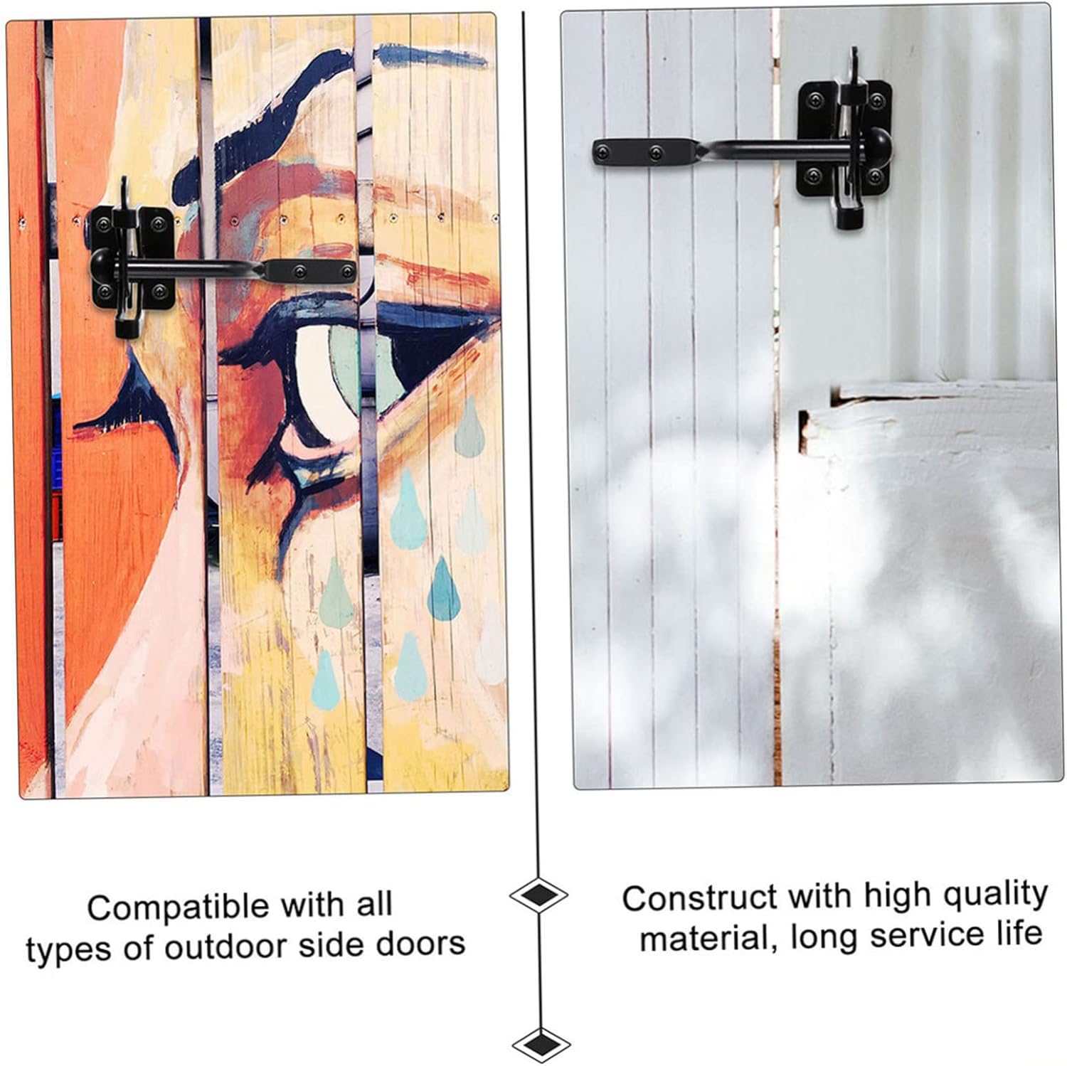 Package List 4 x Latch Features - Material: steel Lever Gate Latches. - Size: 14. 50X6. 00X5. 50cm/ 5. 70X2. 36X2. 16in Door Latch - Color: Black Gate Latch Accessories. 1 x Automatic Gravity Lever Package Including Lever Latch for FenceGoods DescriptionPost Mount Automatic Lever Replace old or broken self- locking with a new one.Wood Fence Gate Lock That' because our product can meet your need.Self Locking Gate Latch a for your family.Lever Latch for Fence easy to use and bring you much convenience.Automatic Locking Latch If you are looking for a professional and fence, then your research is over here.Gate Latch for Fence Adopted of , practical and durable for long time use