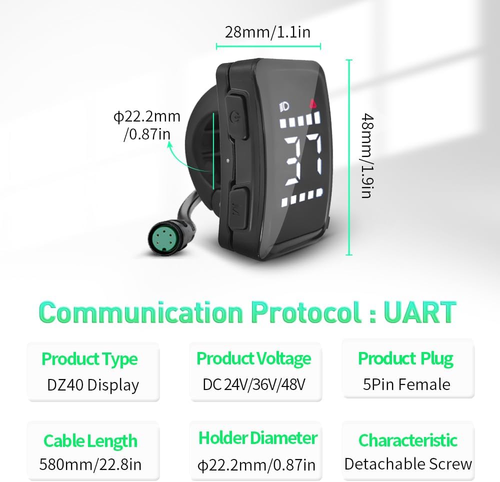 Ebike 36V/48V S866/DZ40 display green 5pin female head can be compatible with BBS01 BB02B BBSHD center motor, but cannot be compatible with wheel hub motor controller