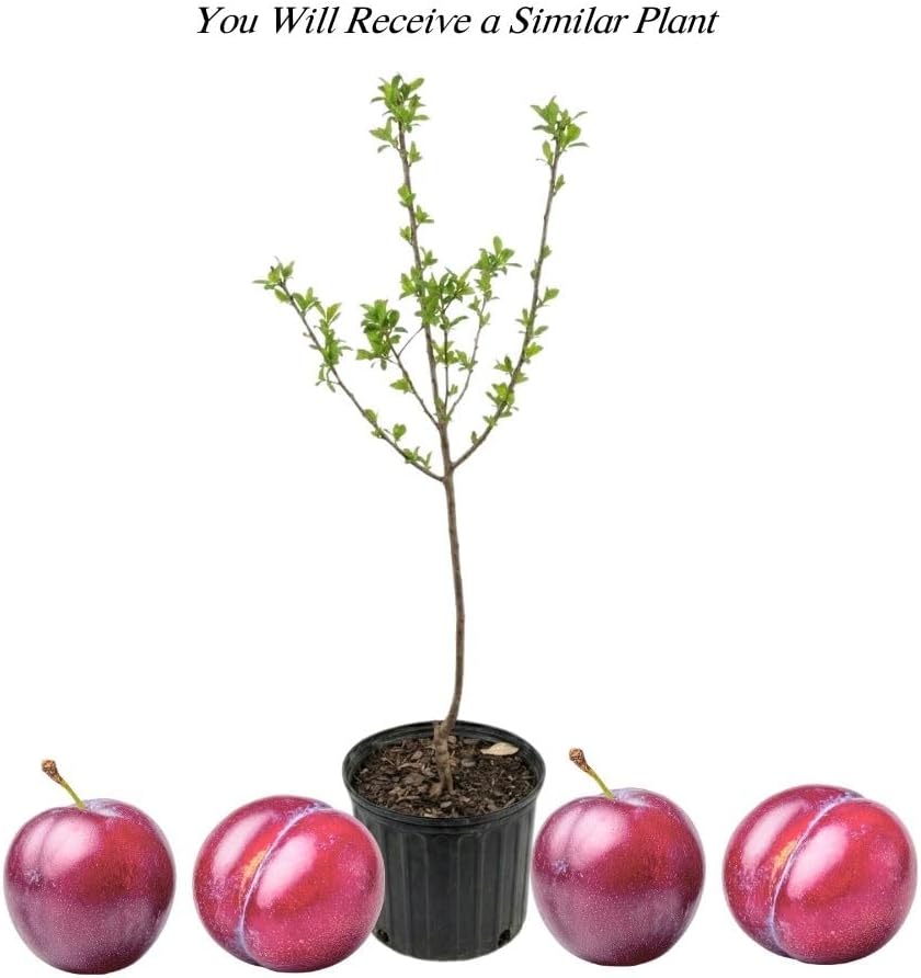 Methley Plum Tree 2-3 Feet Tall in 3 Gallon Pot, Red Purple Plum Plant Live, Hardy PlumsTrees for Planting Outdoor Garden, No Ship to CA