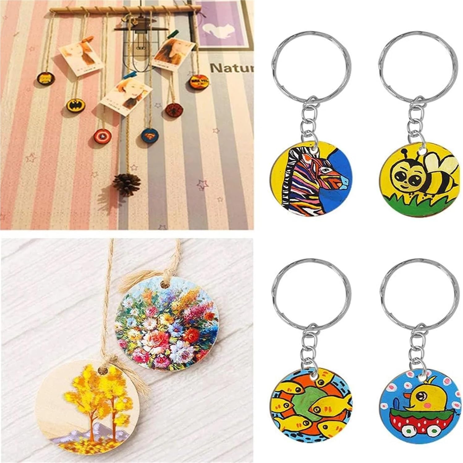 Multifunctional Organizing Tool: Suitable for managing keys, storage, equipment, and daily items to keep everything neatly categorizedDiameter of each slice is 50 mm and the thickness is 2.5 mm/ 0.18 inch, each slice has 1 holes with 3 mm/ 0.12 inch diameter each, key rings measure 25 mm/ 0.98 inch in diameterDIY Keychains Making Kits:These rectangular wood chips can be used to make family calendars, birthday signs, DIY hand-painted, Christmas signs, key chains, backpack bag tags, to help you make crafts easily.Note:Due to the different monitor and light effect, the actual color of the item might be slightly different from the color showed on the pictures. Thank you!Please allow 1-2cm measuring deviation due to manual measurement.