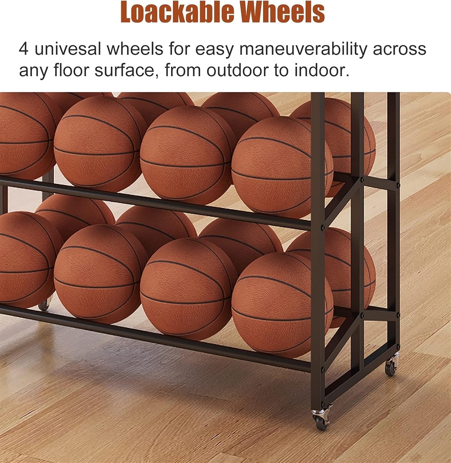 Product Description: Whether you need a simple storage solution for your sporting goods, or additional shelf space in your home gym, garage, or anywhere in the house, our sport storage System is your best chose. It is ideal for the garage, home, Storage room, playroom, gym, playgroup and schools. Specifications: Material: Metal Iron Color: Black/Gold/White Size: 4 Tier: 130x38x110cm(51.2x15x43.3in), Hold about 40 balls; Features: The large storage container has space for basketballs, footballs, soccer balls, volleyball, helmets and sports equipment. Organize all your sports equipments together, make your stadium and game room much better. Rolling wheel design, easy to move organizer indoors and outdoors, and fits in a specific position. Package Content: 1× Ball Storage Rack(Does not include other items shown in the picture) Precautions: Because it is processed by hand, the finished product usually has an error of 1-3 cm, please understand. There may be some differences between the image and the product due to display and lighting reasons, please refer to the actual product.