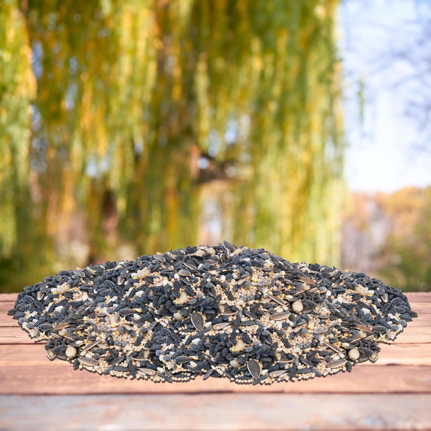 Give your backyard birds a nutritious, energy-rich feast with the Divine Blend Wild Bird Seed Mix, 25 lbs. Formulated to attract a wide variety of songbirds and larger ground-feeding species, this classic mix features a generous 65% black oil sunflower seed, known for its exceptionally high fat and oil content. This makes it a powerhouse fuel source for birds during migration, breeding, nesting, winter weather, and everyday activity. Alongside sunflower seed, the blend includes safflower seed, white millet, and peanut pieces, offering balanced nutrition and enticing flavor diversity. These ingredients help attract cardinals, finches, chickadees, nuthatches, titmice, sparrows, grosbeaks, jays, wrens, goldfinches, doves, woodpeckers, and many others. The mix is a low-waste formula, reducing discarded shells and leftovers to keep your feeding area cleaner. Perfect for use in platform feeders, tube feeders, tray feeders, and hopper feeders, this mix supports a wide range of bird feeding styles and behaviors. Packaged in a 25-pound bag with a convenient carrying handle, it's easy to refill multiple medium to large feeders. Whether you're feeding a single backyard feeder or maintaining a large feeding station, Divine Blend ensures birds receive premium nutrition throughout the year.