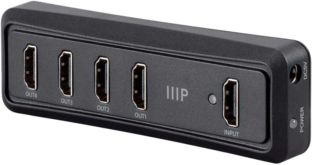 The Monoprice Blackbird 4K USB-Powered 1x2 HDMI Splitter allows you to distribute 4K UHD HDMI video from a single source to two high-resolution displays. Rather than using a proprietary AC power adapter, which can get lost in a move and which requires an open AC power socket, it uses a basic USB connection for its power. This allows you to use a standard USB wall charger, a USB charger integrated into a power strip, or an open USB port on your smart TV or Blu-ray Disc player. It supports all HDMI video resolutions up to 4K @30Hz, as well as high-definition, multichannel audio.